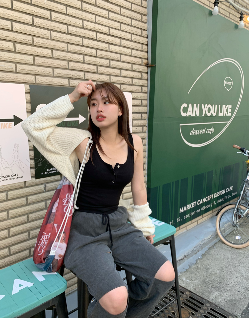 오버핏 볼레로 부클 니트 가디건
