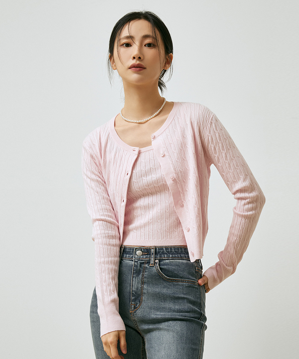 [에어 비스코스] 하이게이지 케이블 R넥 가디건_G,W_SPCKD23U04