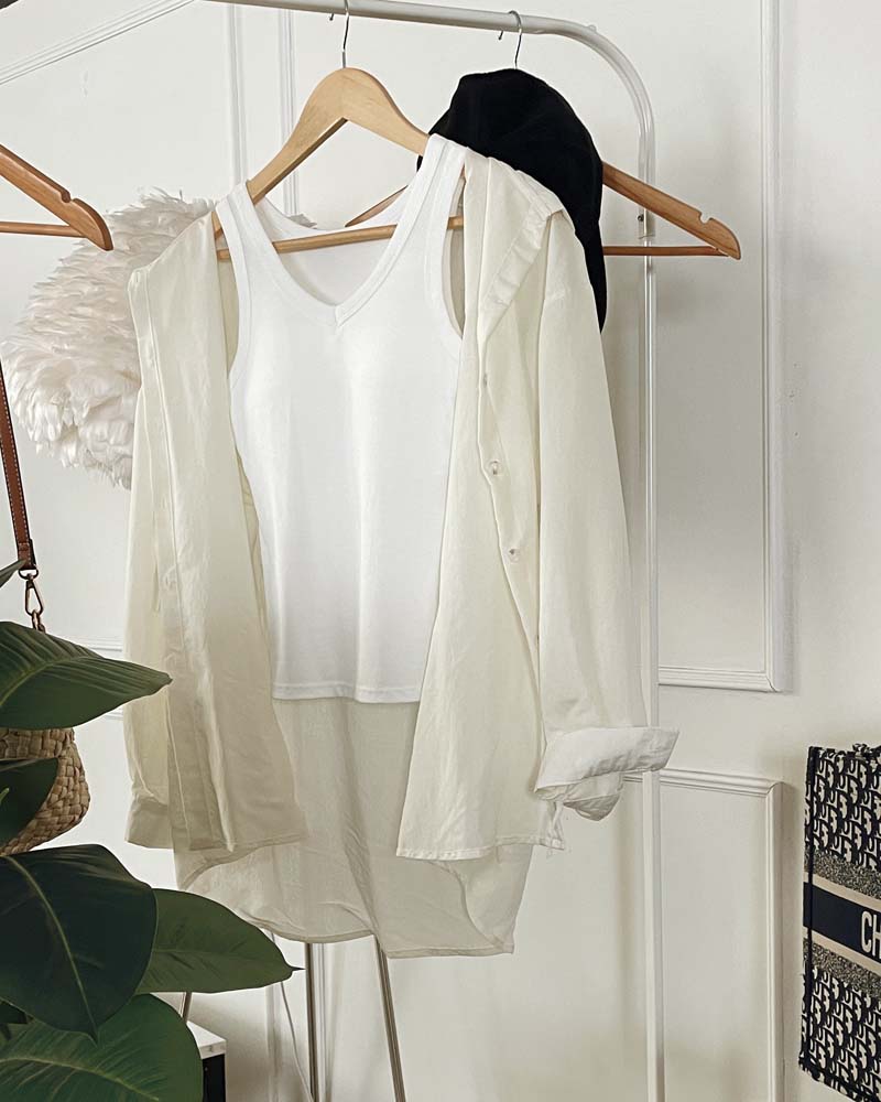 [여리핏] 시스루 후드 셔츠 블라우스 박시한 여름 장마철 간절기 남방 휴가 레이어드룩