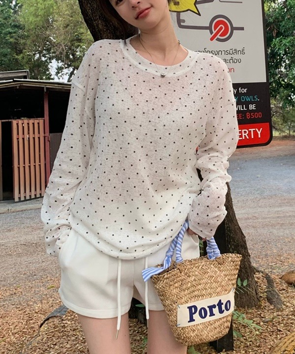 [여름신상💞]도리 라운드넥 도트 시스루 여름 긴팔티